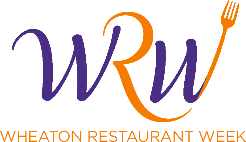 Logo for Wheaton Restaurant Week featuring stylized purple letters "wRw" with orange accents and a fork integrated into the design, and the text "Wheaton Restaurant Week" below.